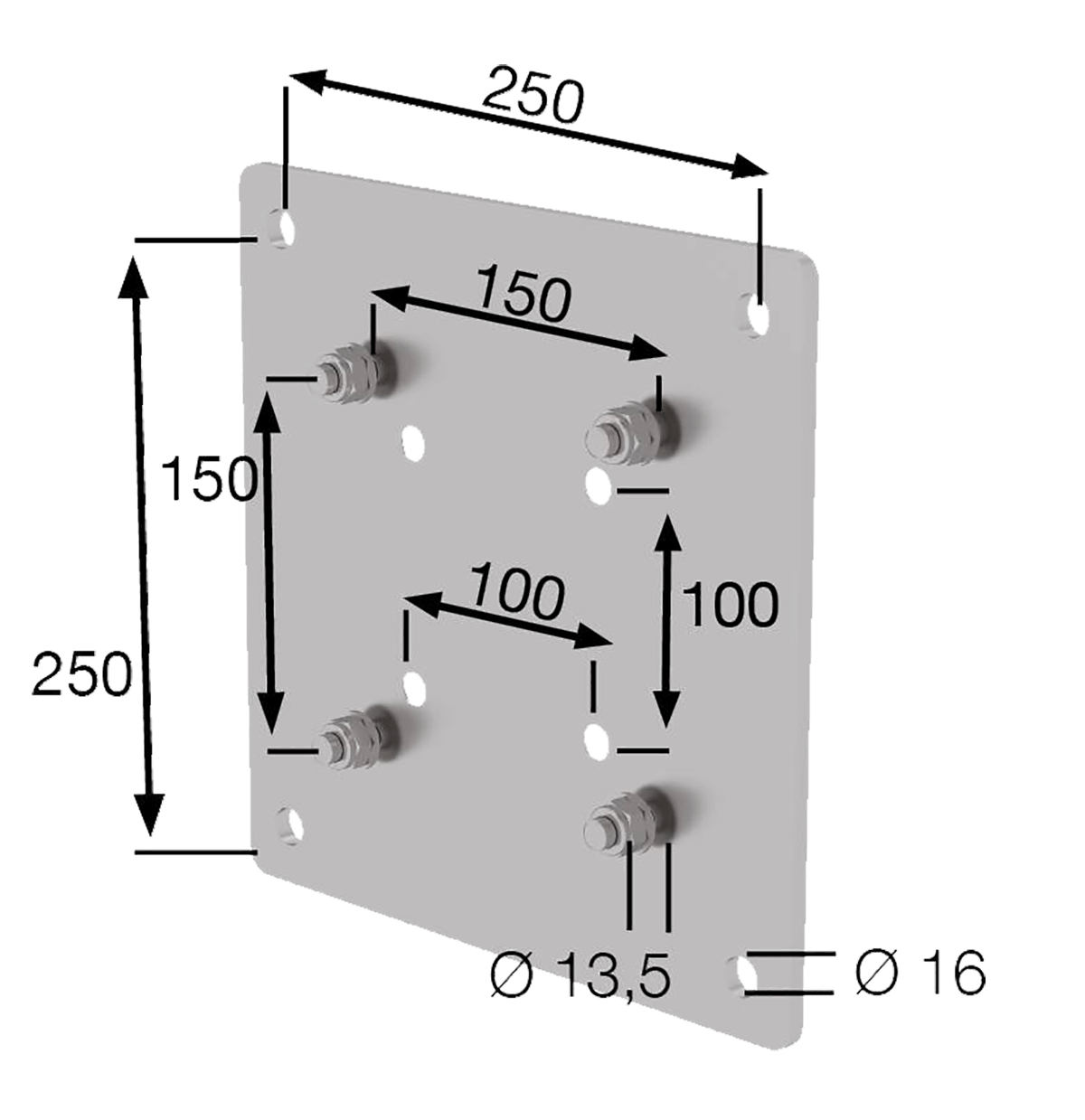 Passend für Wandhalter mit 4er Grundplatte und Distanzsegment, Bohrbild 150 mm.