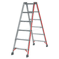 anhand einer Stufenstehleiter mit Plattform und einer beidseitig begehbaren Stehleiter